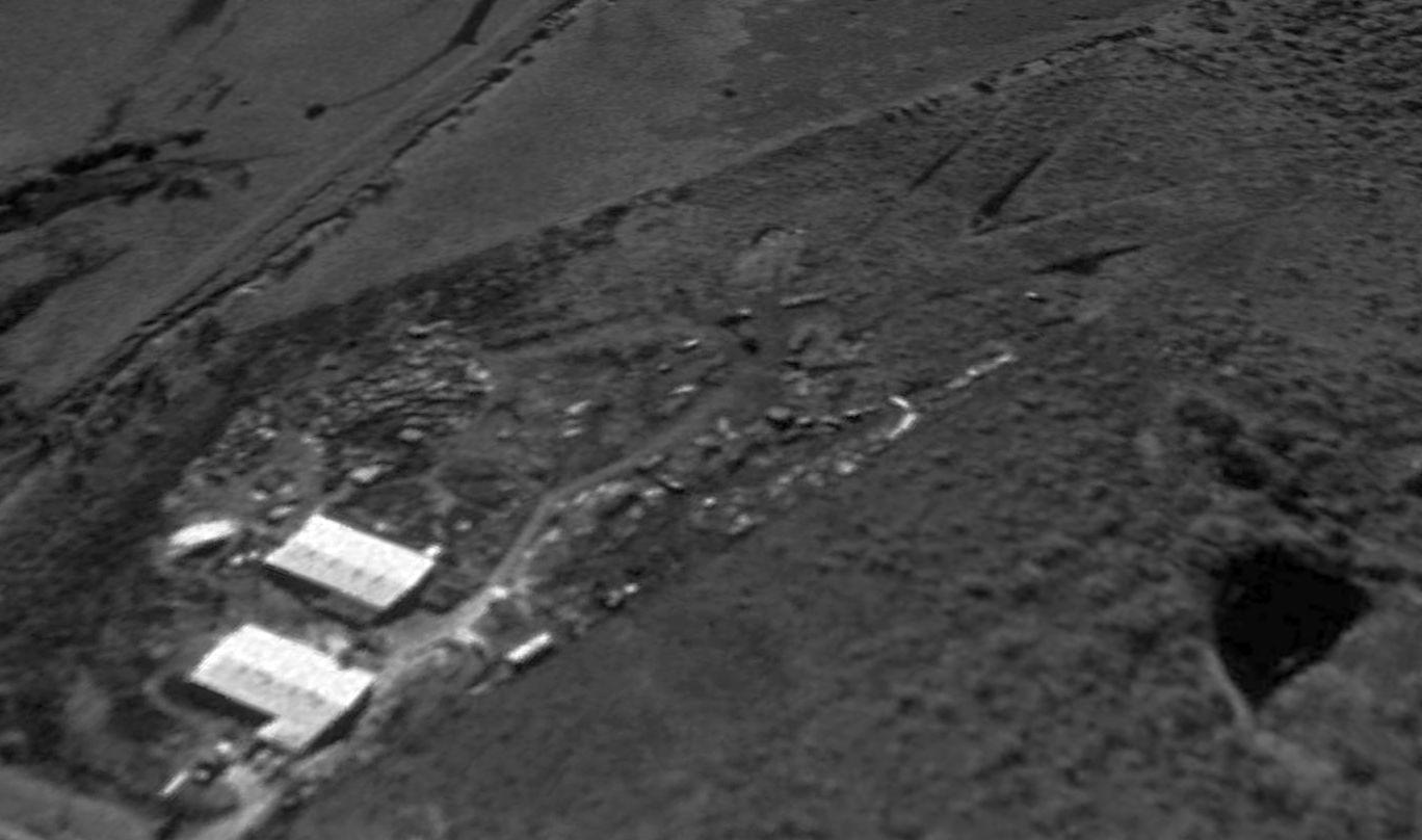 It depicted the single runway, with several hangars & a dozen light planes on the northwest side.