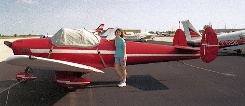 This was was of Patricia Griffin in front of a pretty red Ercoupe N666H.