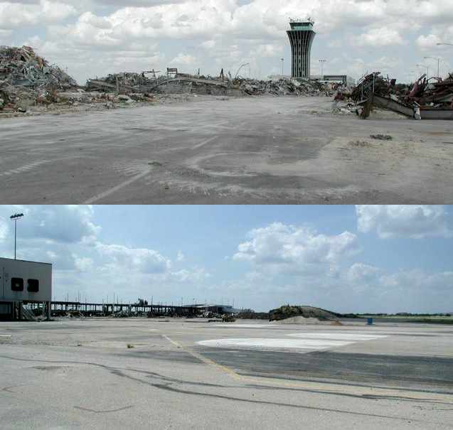 and the old road that led into the airport from Howard Lane has been turned under by bulldozers,
