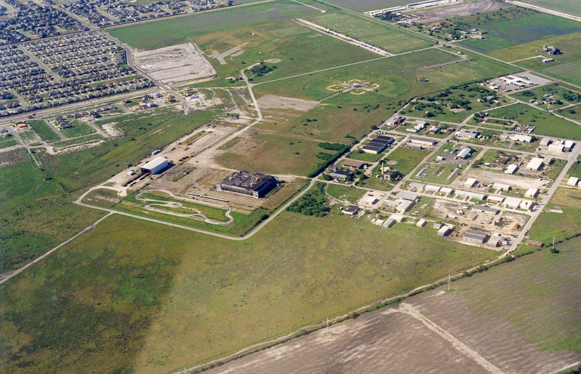 A circa 2005 aerial photo looking north at Waldron's control tower -