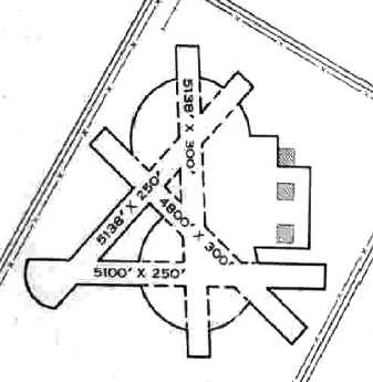 Both had 4 paved runways extending toward the west, northwest, north, and northeast, extending out from a paved circular landing mat.