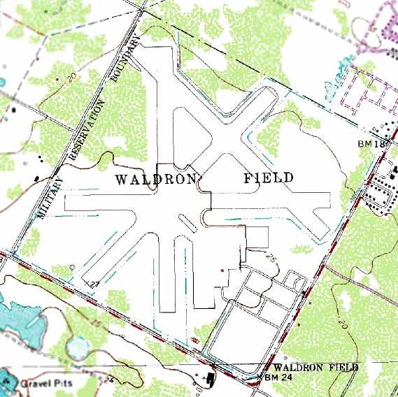 The 1951 USGS topo map depicted Waldron Field as having 4 paved runways, a control tower, and numerous buildings.
