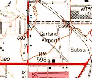depicted Garland as a private airfield having a 2,500' paved north/south runway.