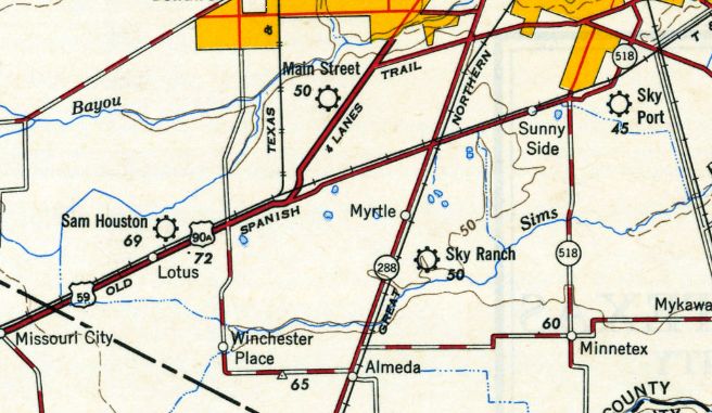The site of Cunningham Airport is located southwest of the intersection of Old Spanish Trail & Almeda Road.