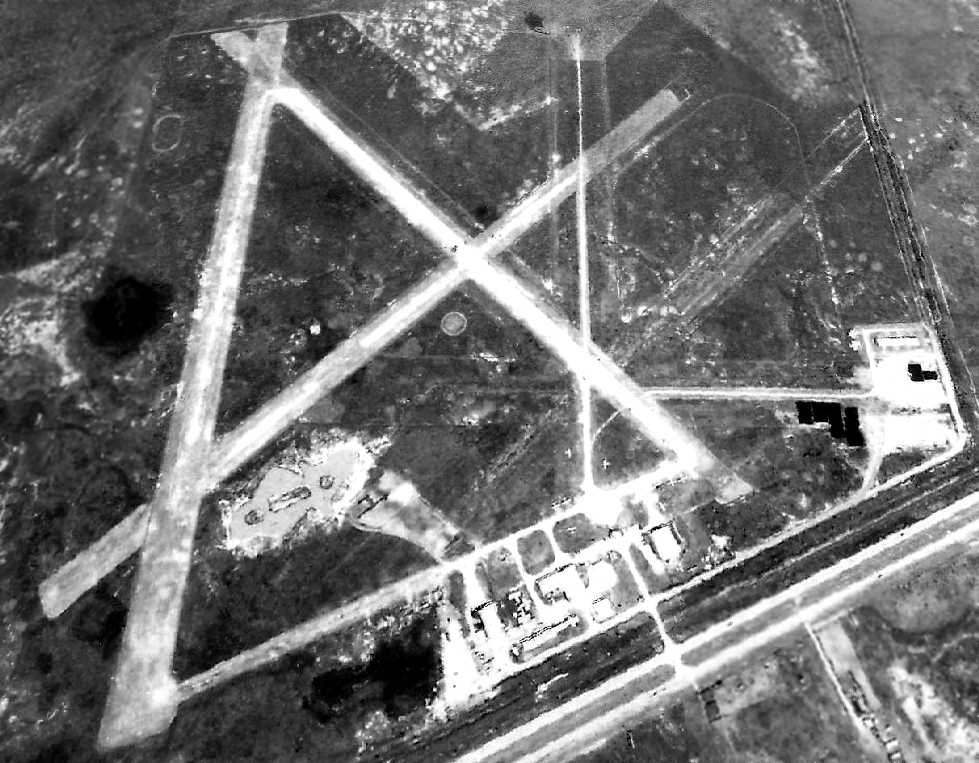 A 1944 aerial view (courtesy of Ron Plante) looking south at the original Camp Hullen airfield,
