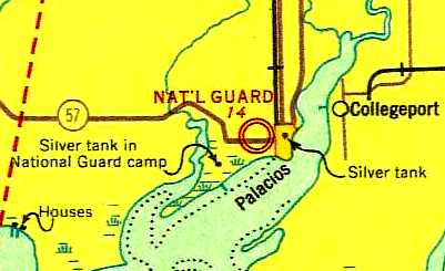 It depicted a military airfield labeled simply "Nat'l Guard", located adjacent to then the western edge of the town of Palacios.