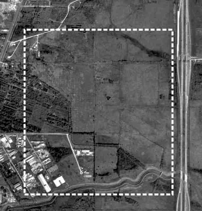 The 1995 USGS aerial photo showed that the field had been completely replaced by new roads & commercial buildings,
