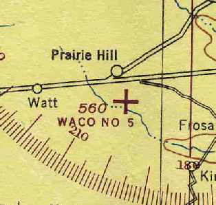 The 1945 AAF Airfield Directory (courtesy of Scott Murdock) described “Waco AAF Auxiliary #5 (Prairie Hill Field)”