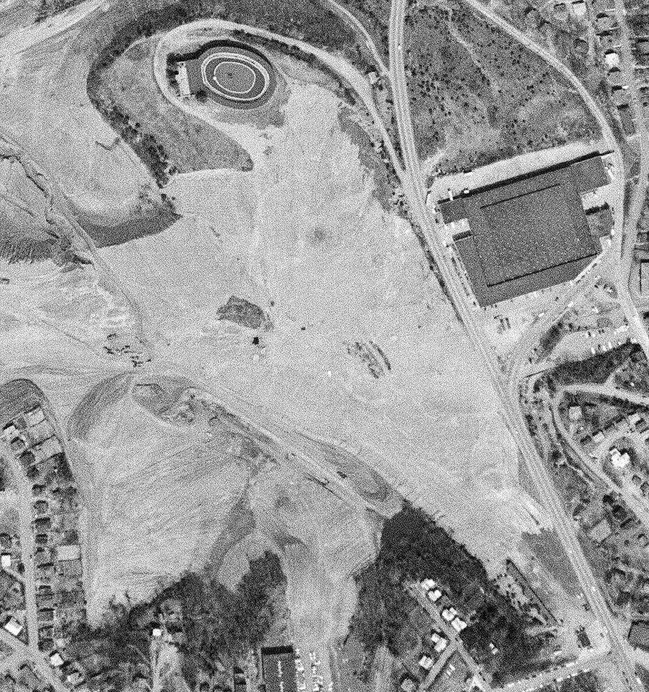 A 1994 aerial photo showed the airport site had been covered by the Liberty Fair Mall.