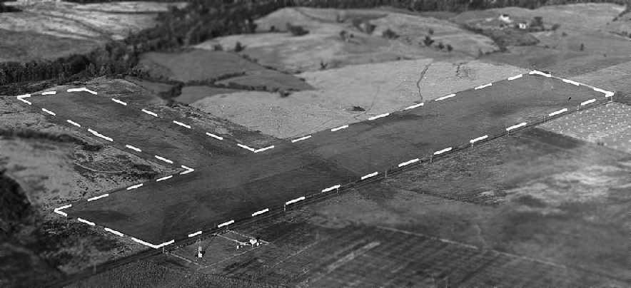 A 6/20/11 aerial view (courtesy of Dallam Oliver-Lee) showed a row of trees along the west side of the property which traced the outline of a runway