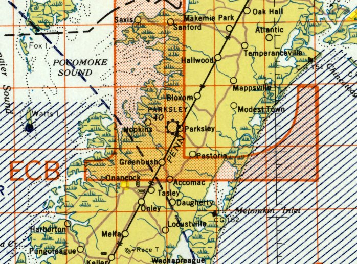 It depicted Parksley as an auxiliary airfield.