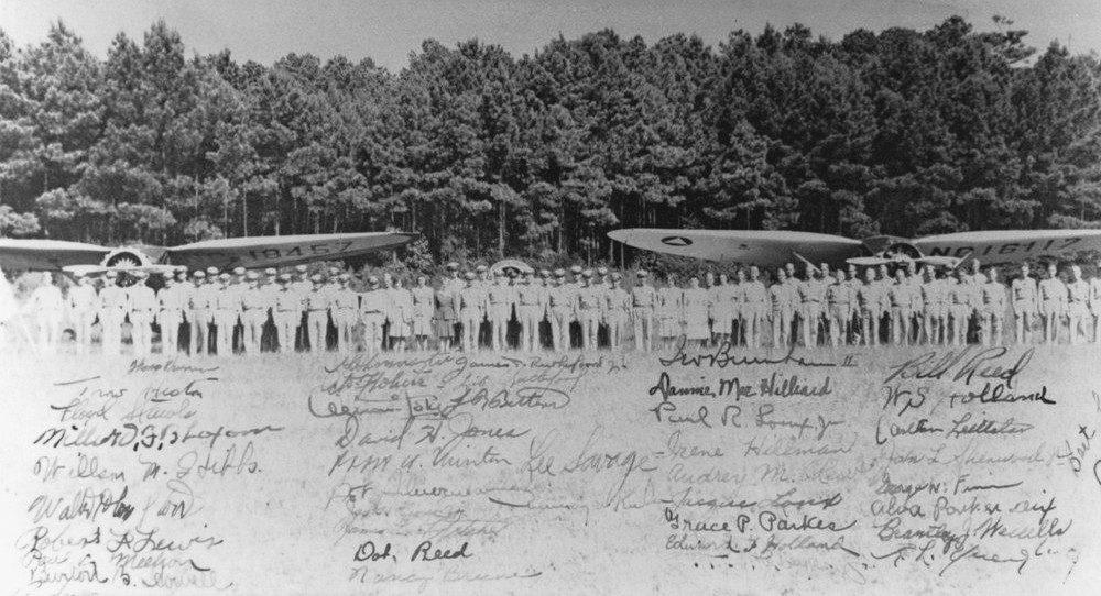 A circa 4/30/42-8/1/43 photo of Civil Air Patrol members at Parksley Airport (courtesy of Patrick Fulgham)