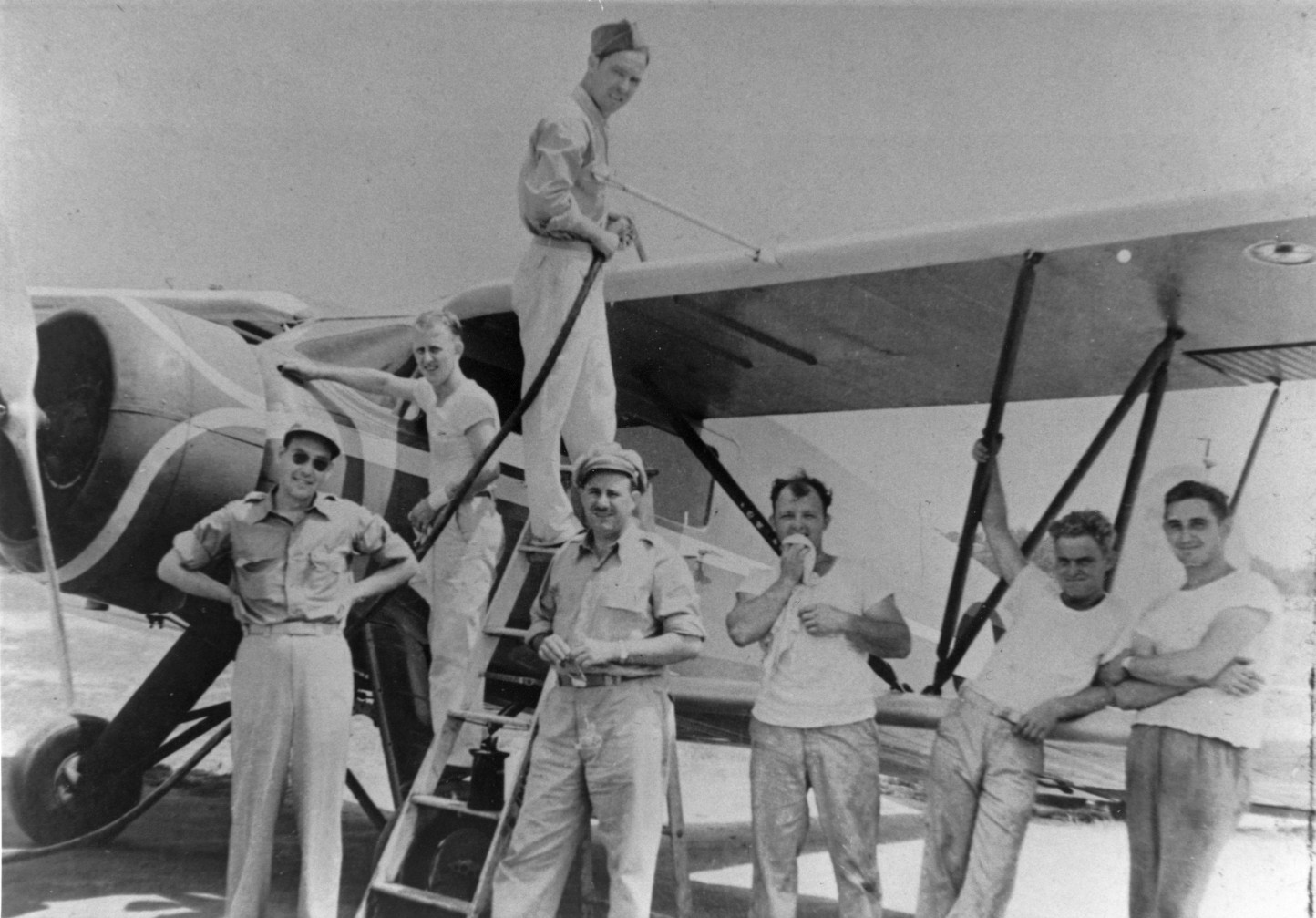 A circa 4/30/42-8/1/43 photo of Civil Air Patrol members refueling a biplane (model unidentified) at Parksley Airport (courtesy of Patrick Fulgham).