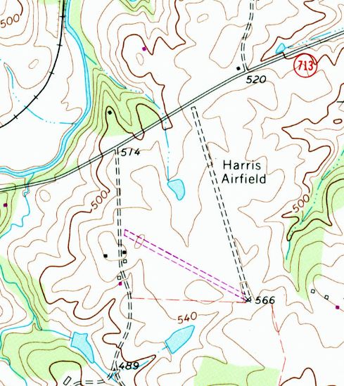 It depicted Harrsis Airfield as having a single unpaved northwest/southeast runway.