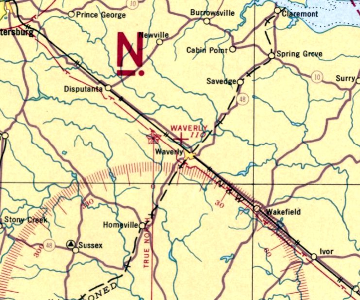 as the November 1936 Norfolk Sectional Chart depicted a predecessor Waverly Airport to the west of the town.