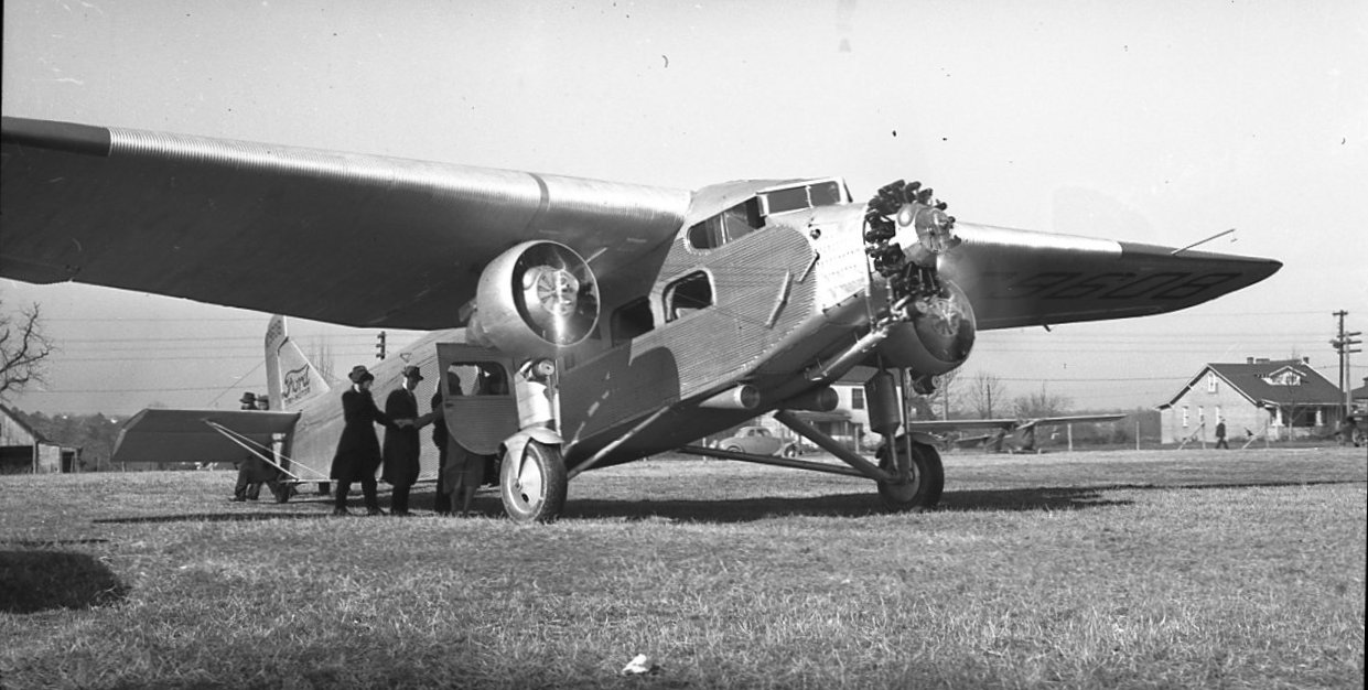 A circa late 1930s / early 1940s photo of passengers boarding Ford Tri-Motor at Central Airport (from the collection of Frederick Bates, courtesy of Marilyn Bates Headley).