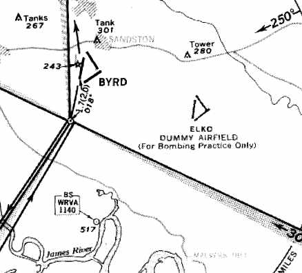 The only official depiction which has been located of the Elko Decoy Airfield was on a 1955 approach plate for Byrd Field.