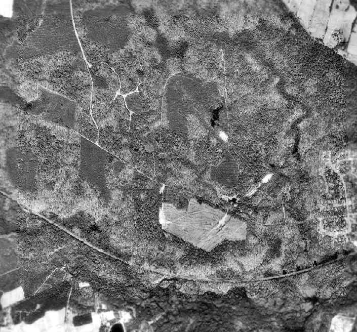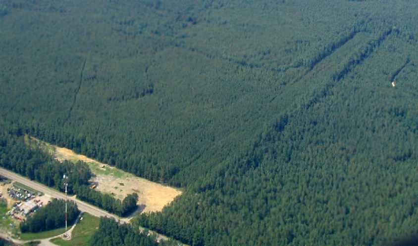 A 6/04 aerial photo by Paul Freeman looking north at the remains of the 2 runways at Waverly.