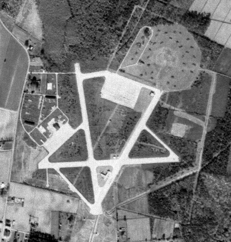 depicted the field as having 3 paved runways, with a large number of aircraft parked on the northeast ramp.