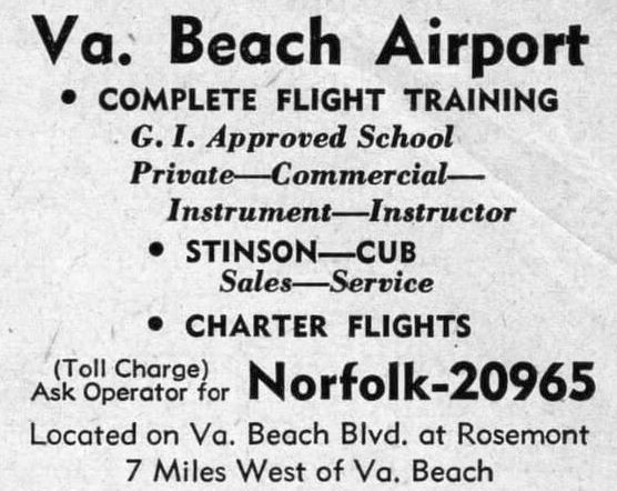 The original Virginia Beach Airport was evidently established at some point between 1946-47,