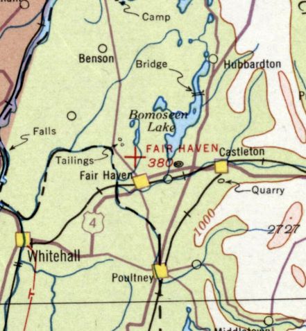 The 1957 VT Airport Directory (courtesy of Jonathan Westerling) described Fair Haven Airport as having a single 1,800' north/south runway (turf with gravel center strip),