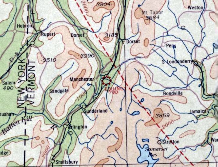 The 1957 VT Airport Directory (courtesy of Jonathan Westerling) described Equinox Airport as having 2 turf runways (1,800' northeast/southwest & 1,400' east-northeast/west-southwest),