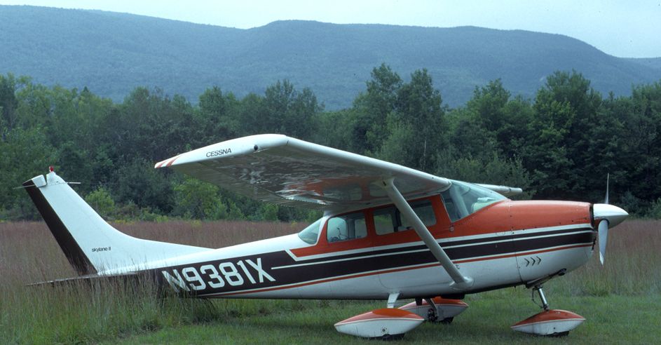 An 8/15/98 photo by Tom Hildreth of a Cessna 182E Skylane at Equinox Airport.