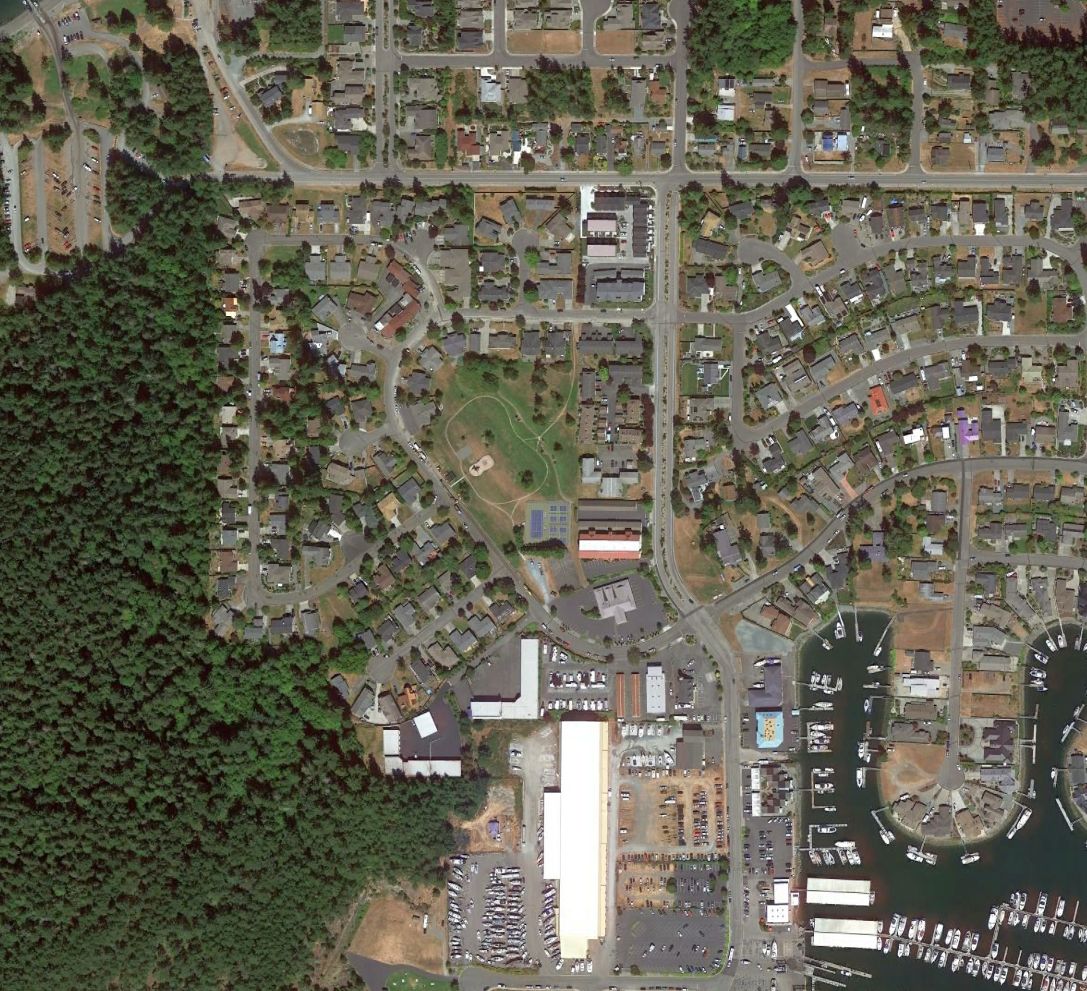 A sad 8/25/11 aerial view looking northeast at the site of Blaine Municipal Airport shows that redevelopment occurred very soon after the airport's closure,