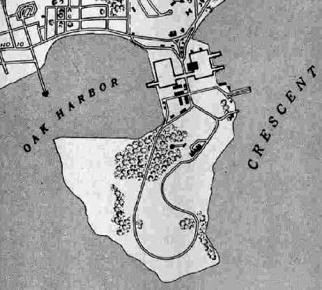 The facilities of Oak Harbor Seaplane Base were depicted (but unlabeled) on the 1951 USGS topo map.