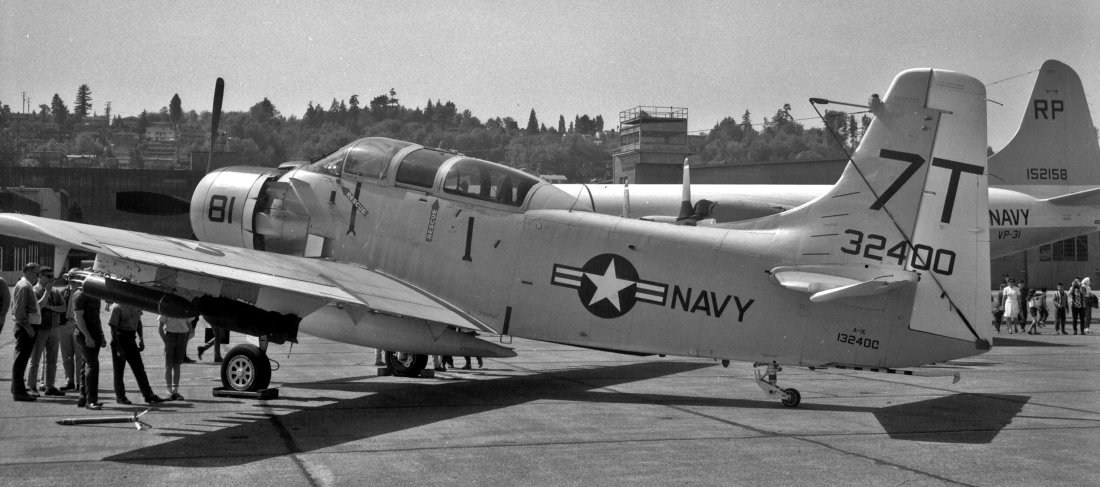 An early 1960s photo of Douglas A-1E Skyraider 132400 at Sand Point.