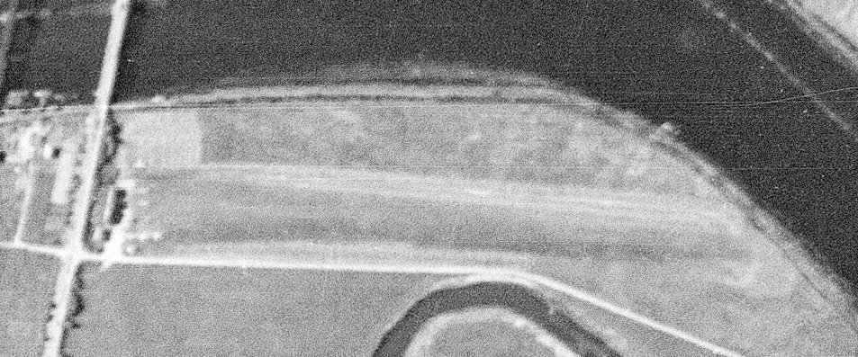 A 1980 aerial view showed the runway having been removed, with only an outline of its southern portion still recognizable.
