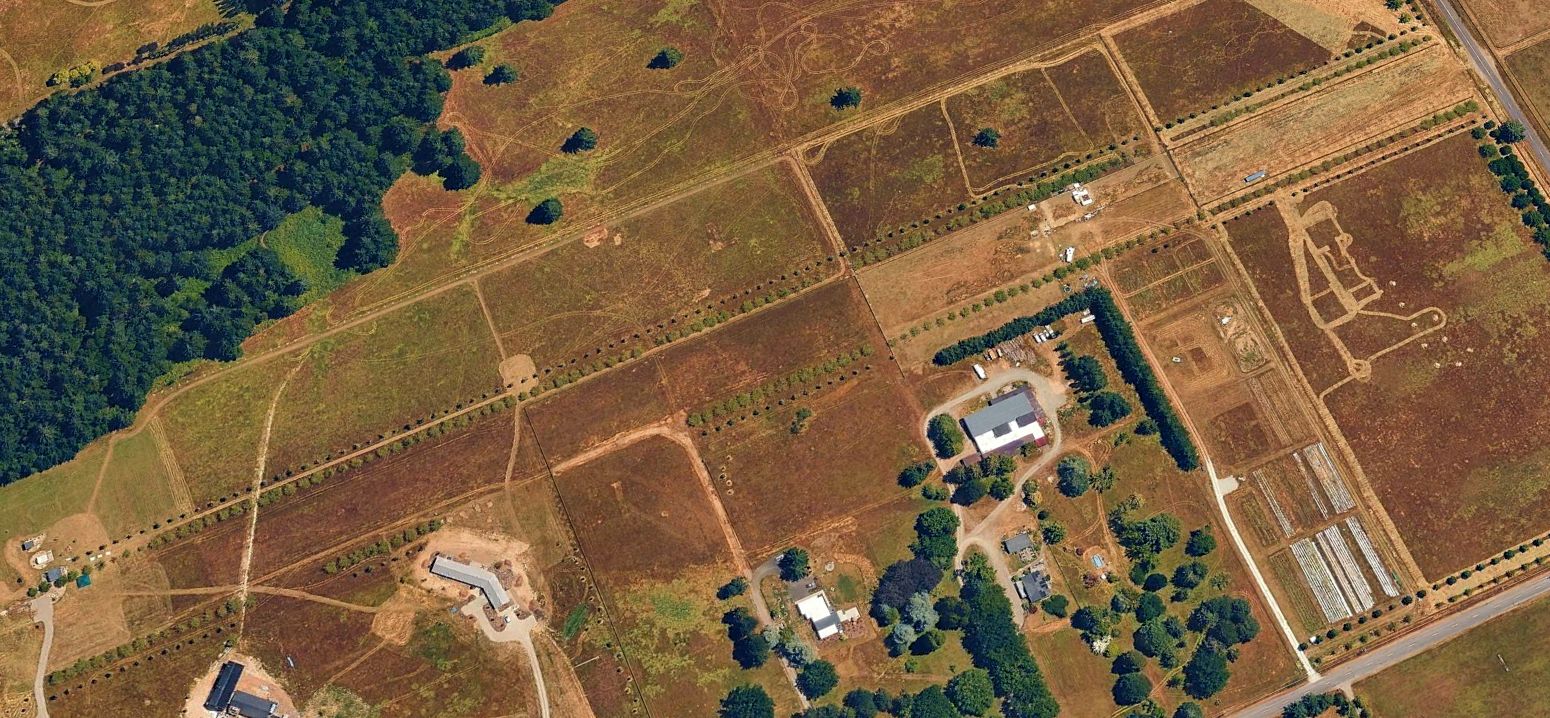 An October 2021 photo looking north showed the former Wax Orchards Airport runway as being fenced off.
