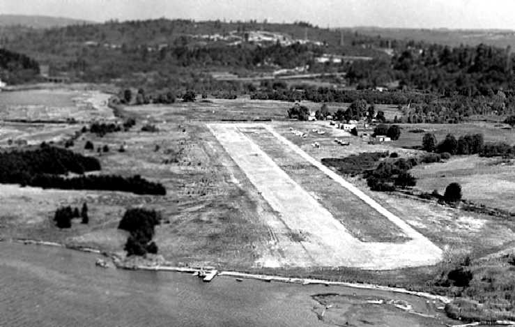 The original airport for the town of Everett was located northeast of the town, on a narrow sliver of land on Ebey Island.