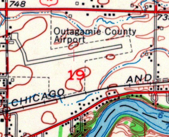 The last aeronautical chart depiction which has been located of Brown County Airport was on the December 1948 Green Bay Sectional Chart.