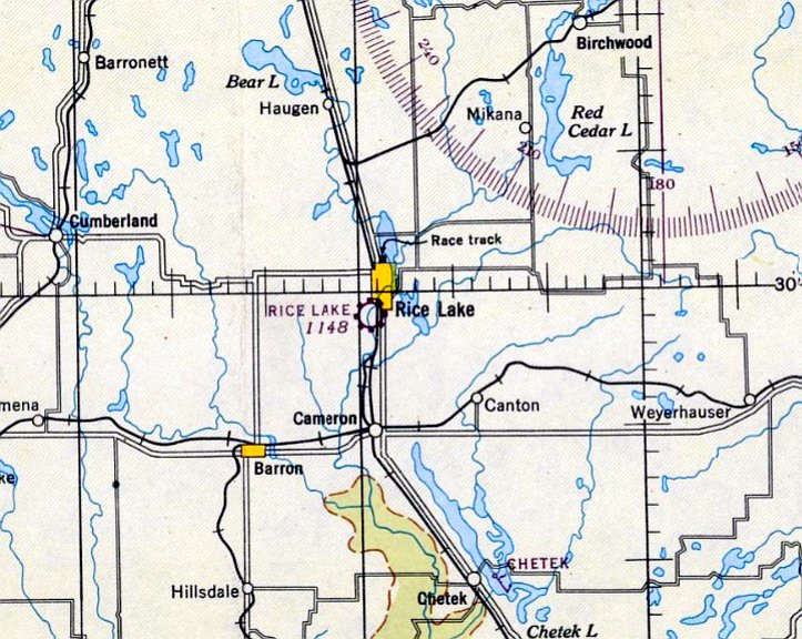 At some point between 1945-46, the original Rice Lake Municipal Airport was apparently replaced by a new Rice Lake Airport to the northeast of the town,
