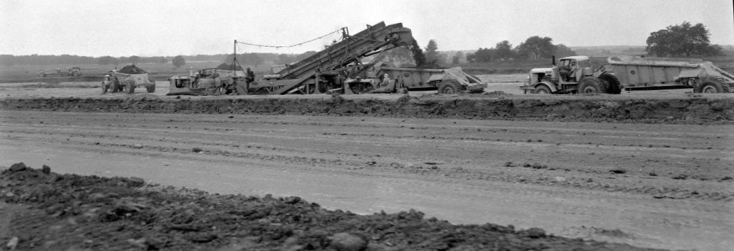 A circa late-1950s photo of the Bong AFB runway being graded (courtesy of the Burlington Historical Society, via Bobby Pallamolla).