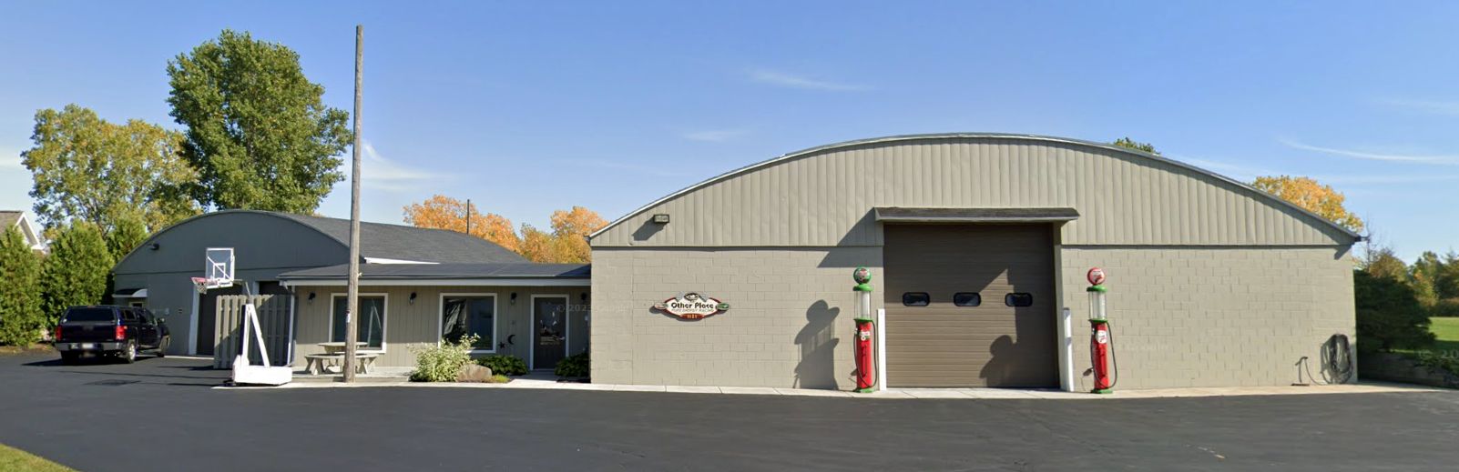 A 2025 photo by Andrew Thome of the Grand Geneva Airport airport office/barn.
