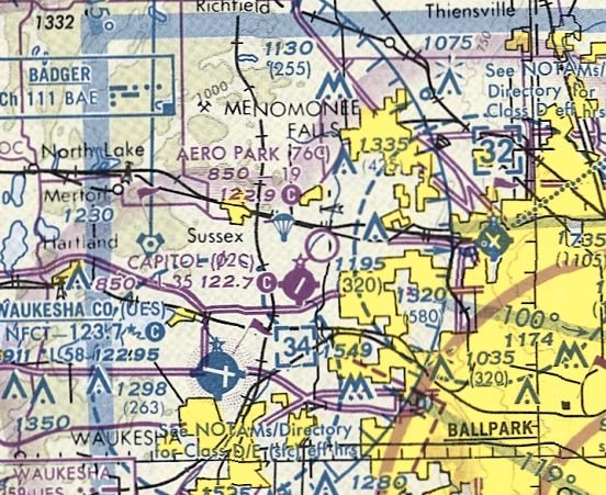 Chaplin Airpark, as depicted on the December 1946 Milwaukee Sectional Chart.