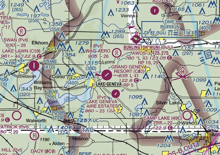 The 2025 Sectional Chart (courtesy of Andrew Thome) depicted Grand Geneva Airport as having a 4,100' paved runway.