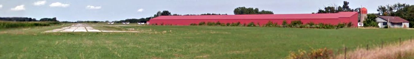 A 2023 photo looking south at the barn & other buildings at Grand Geneva Airport.
