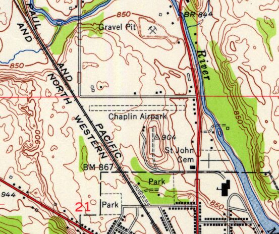 The earliest topo map depiction which has been located of Chaplin Airpark was on the 1954 USGS topo map.