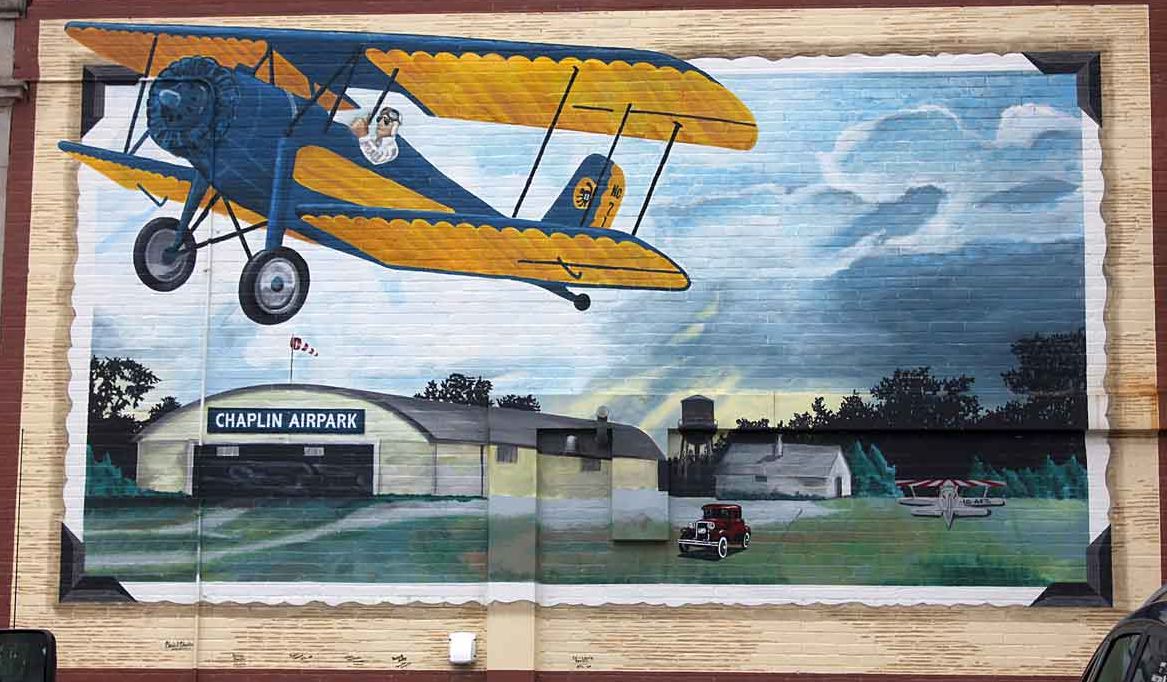 His father Harvey helped him build the hangars. In 1946, the airport was opened & running as Chaplin Airpark. The name was printed in large letters on the rooftop for pilots to see & know where the airport was.