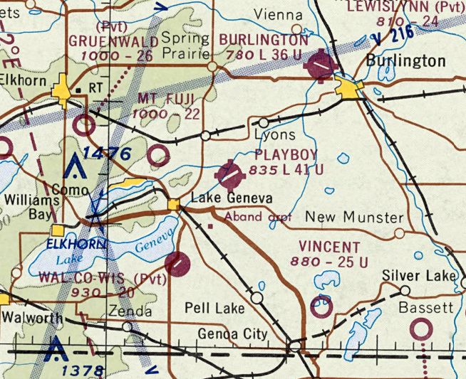 Playboy Airport, as depicted on the May 1970 Milwaukee Sectional Chart.