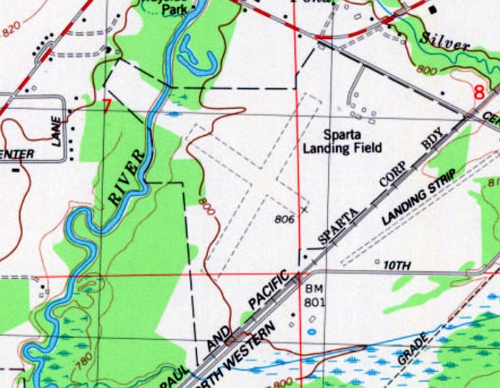 The 1983 USGS topo map depicted “Sparta Landing Field” as having 2 unpaved runways & a few buildings on the northeast side.