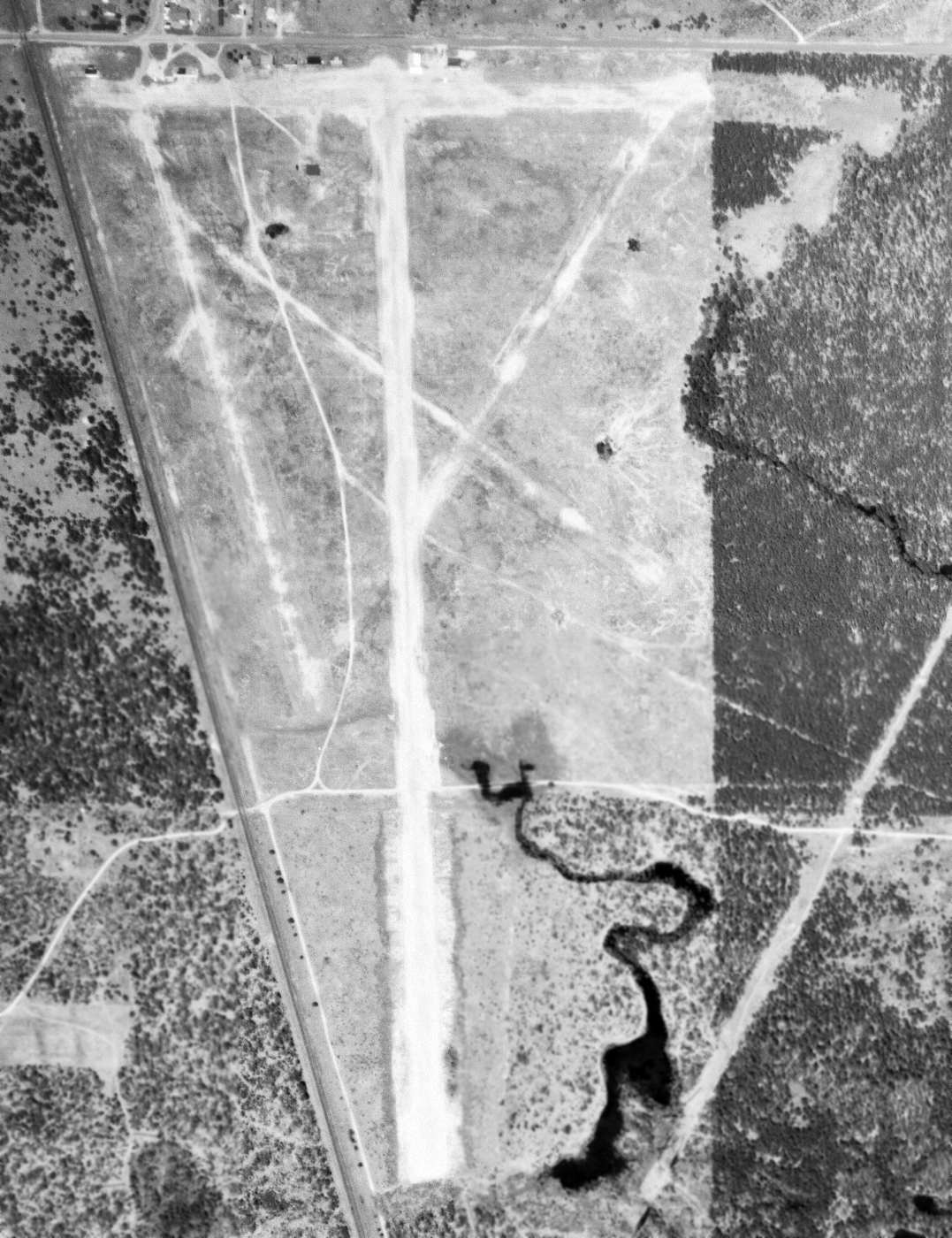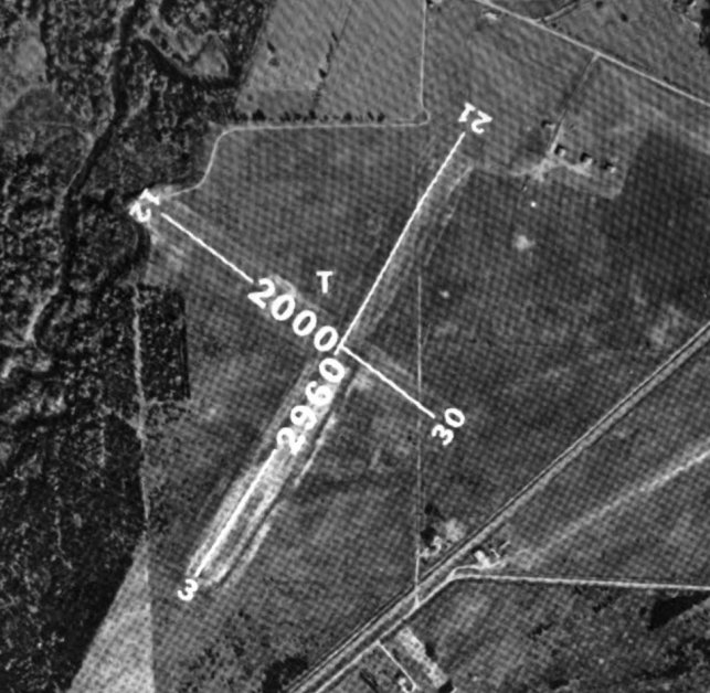 Note that an apparently unrelated unpaved northeast/southwest runway was also depicted across the road to the southeast.