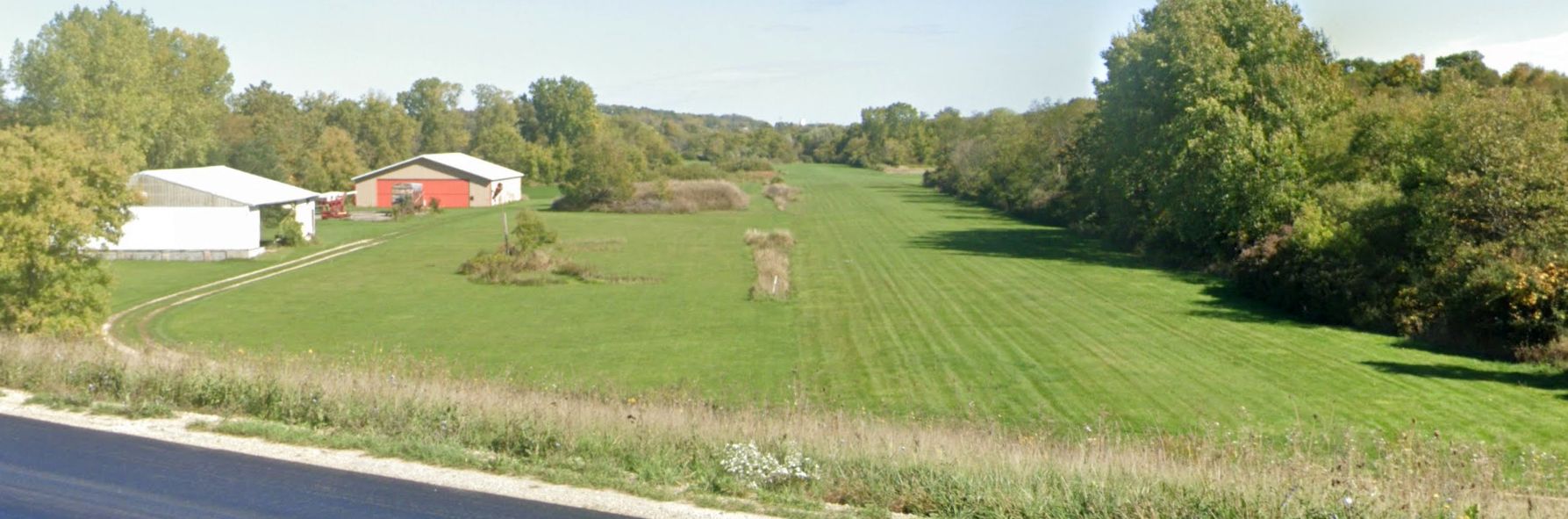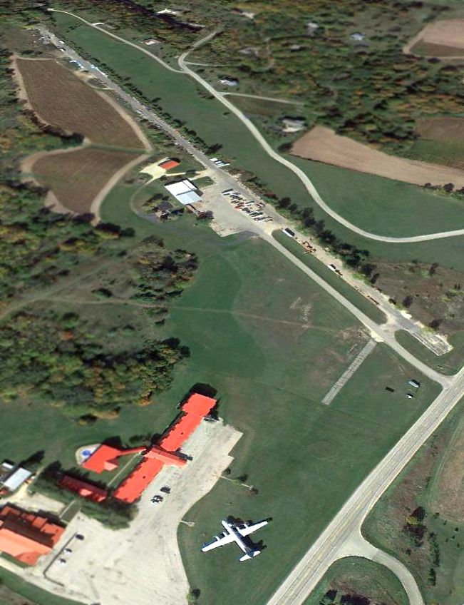 A 2013 aerial view looking northwest at the former Dodgeville Airport shows the runway to remain intact,