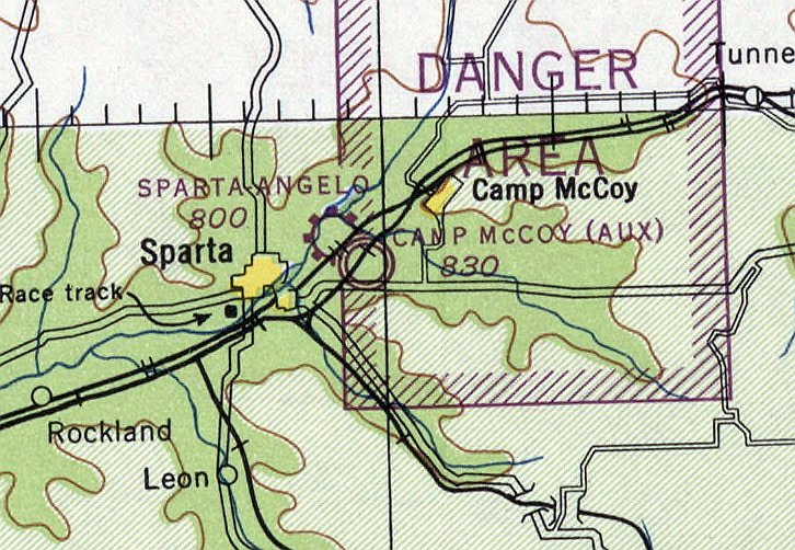 It depicted Sparta-Angelo Airport as a commercial/municipal airport, with the Camp McCoy Auxiliary military airfield directly across the railroad tracks to the southeast.