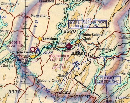 The last aeronautical chart depiction which is available of the original Greenbrier Airport was on the April 1969 Winston-Salem Sectional Chart.